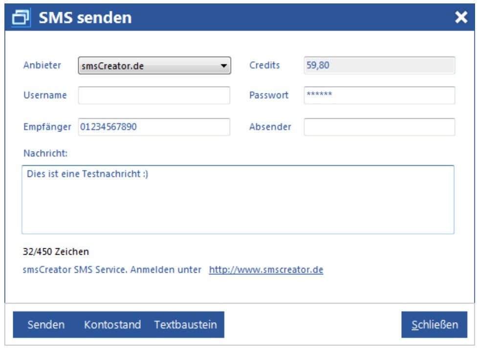 Mit dem Faxmaker von GFI © können SMS versendet werden. Als Versendeplattform kann Ihnen hier der SMSCreator zur Verfügung stehen.