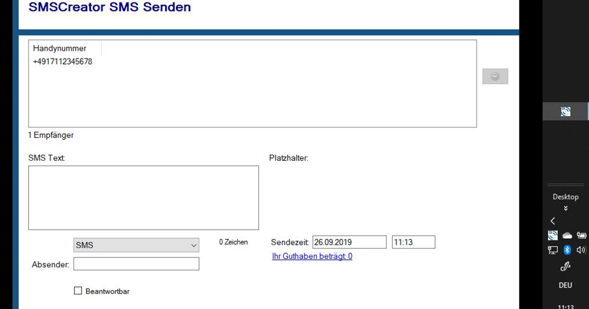 Die ClipboardSms ist die einfachste und schnellste Möglichkeit SMS zu senden. Nach der Installation, diese kleinen und schlanken Pakets, wird dieses in der Taskleiste Ihres Windows PC's angezeigt. Kopieren Sie nun eine Mobilfunknummer wird diese in der Zwischenablage eingefügt und kann mit einem Klick auf des "SMSCreator" Symbol in der Taskleiste versendet werden. Wird ein erweiterter Text markiert z.B. "017022114455; Hallo das ist eine TestSMS". Wird zu der Nummer auch der Text in die Versendung übernommen. Probieren Sie es aus, wir sind uns sicher, dass Ihnen das kleine Tool gefallen wird.