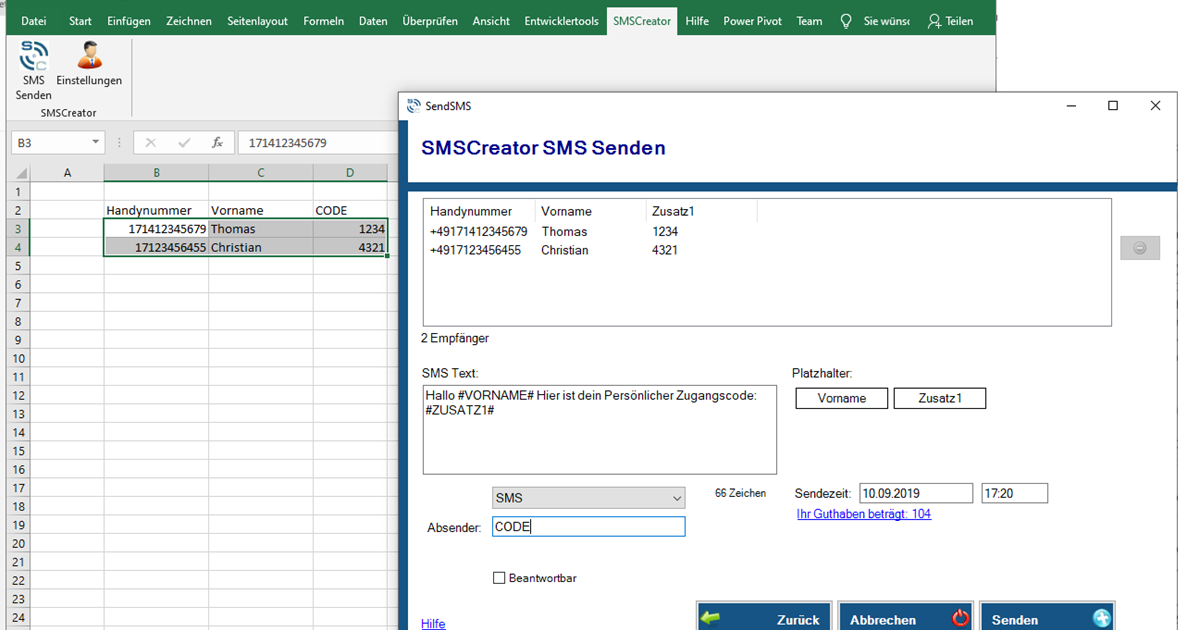 SMSCreator Massen- und Einzelversand für Microsoft Office Excel®
